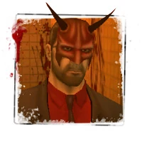 Andrei Puscus is a bearded white male of average build and height. Alluding to his cold-hearted nature, he wears a Devil-like mask with horns and a black suit with a red shirt.