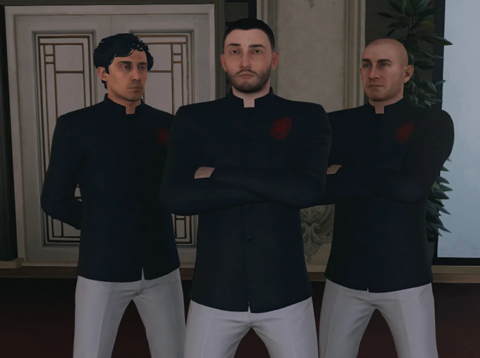 - His clothes are the same as that of the cult bodyguards in The Source, however, his disguise does not permit 47 to carry weapons legally.