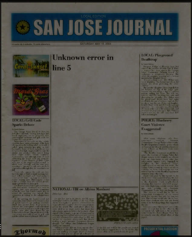 - The pistol has no data for the mission newspaper if used as the weapon of choice. The article will be white blank with the error text "Unknown error in line 5". This can also cause the game to crash.