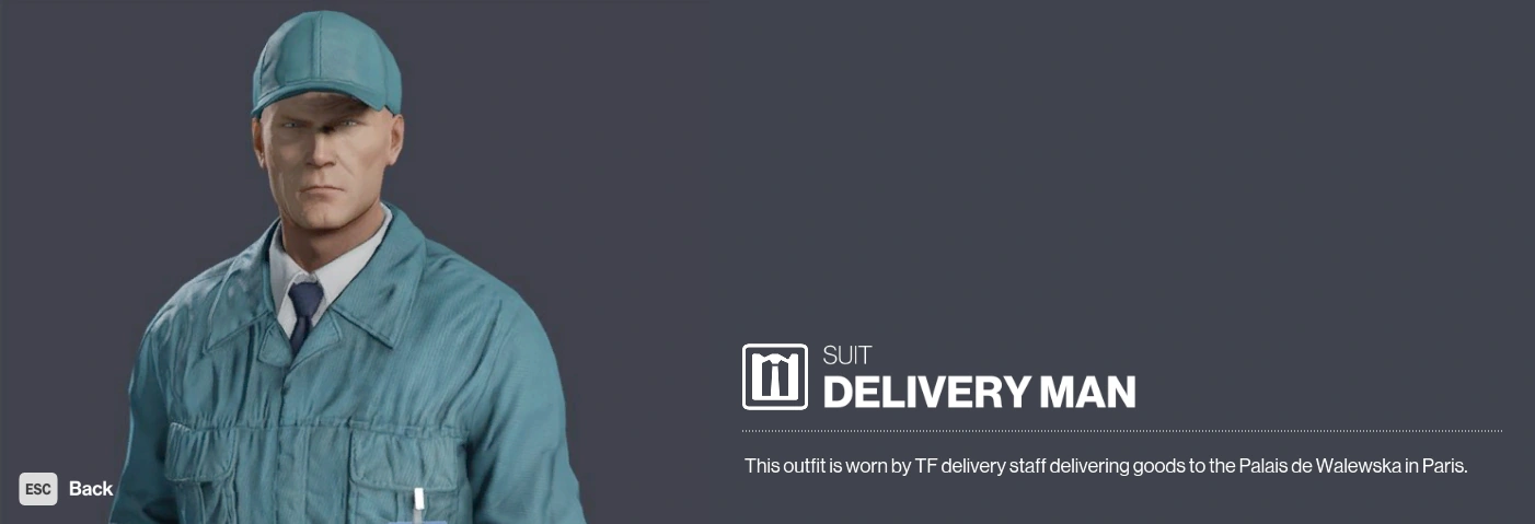 The Delivery Man outfit is a disguise that can be found in HITMAN™.
