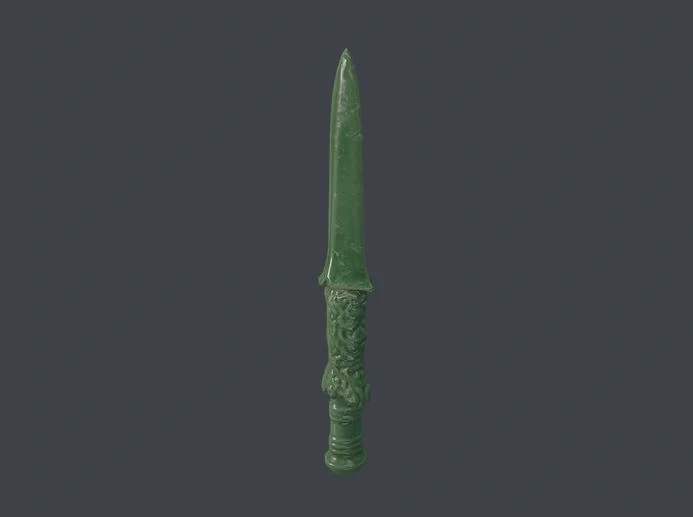 "Jade is known to bring harmony and protection. This dagger, however, only brings death to your enemies. Its handle is elegantly carved from a single piece of nephrite by a master craftsman; the blade is discreet and lethal."