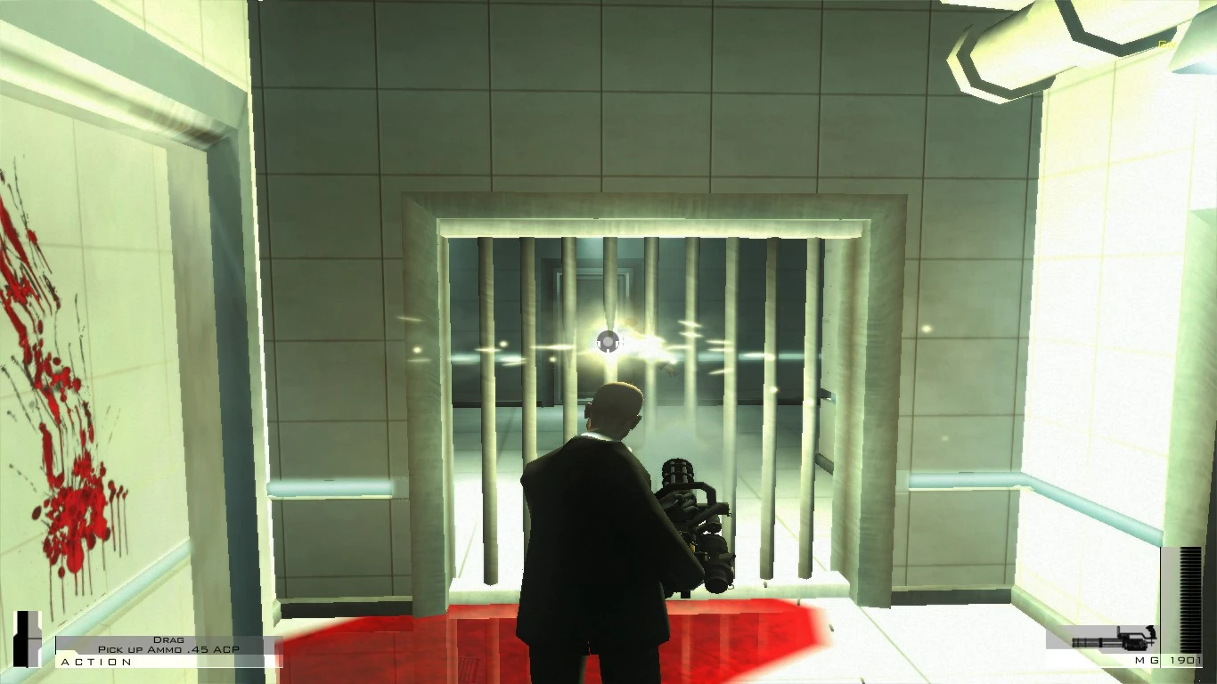 - Oddly enough, the patient who has the Minigun in Contracts does not seem hindered in any way by the gun's weight, going so far as running back and forth while still wielding it. He will also never fire on Agent 47, regardless of what is done to him.