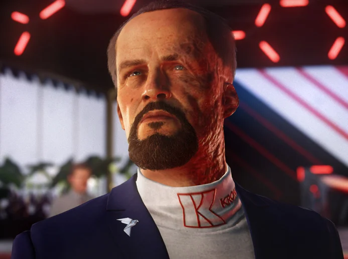 During the course of the level, Robert does a circuit around the upper floors of the Kronstadt building. His route takes him between the firing range with the robot, the engineering laboratories, to his private office and assistant's office on the top floor, and back down again. He has a tense relationship with his daughter Sierra. If Sierra wins the race, which can happen if the player manipulates the outcome, the two will meet in the podium building.