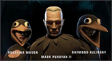 The clone assassin Mark Purayah II is the leader of the group. Angelina Mason and Raymond Kulinsky are the assassins. There are henchmen that guard groups' hideouts and a courier for hire, Billy Jack.