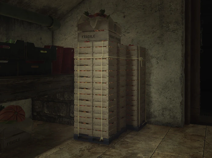 The ICA can smuggle an item into the palace, hidden inside a large stack of food crates (Mastery Level 4 on HITMAN™ Professional Difficulty). |