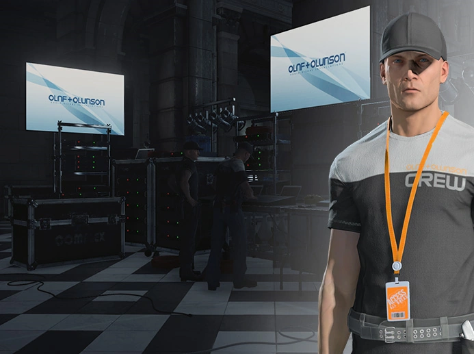 47 has infiltrated the company providing AV tech for the Sanguine show and begins the mission on the first floor, disguised as one of the tech crew (Mastery Level 5 on HITMAN™ Professional Difficulty). |