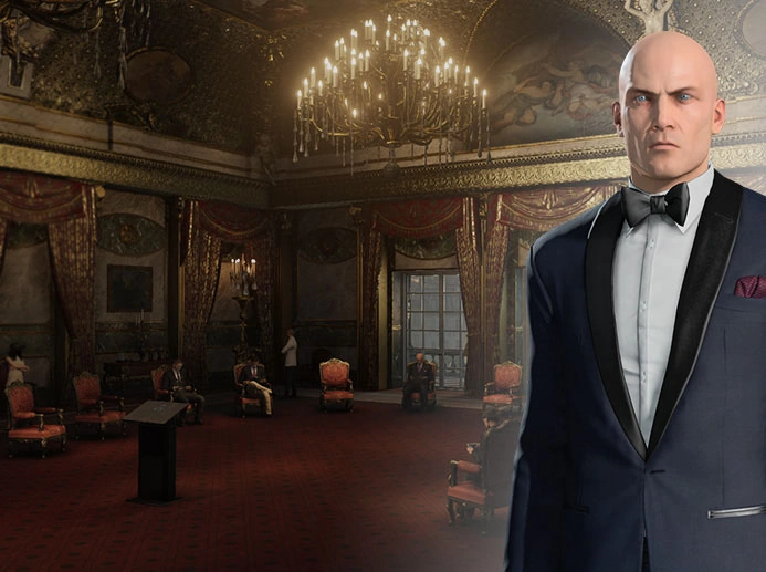 47 has joined the IAGO Auction and begins the mission on the top floor (Mastery Level 9 on HITMAN™ Professional Difficulty). |