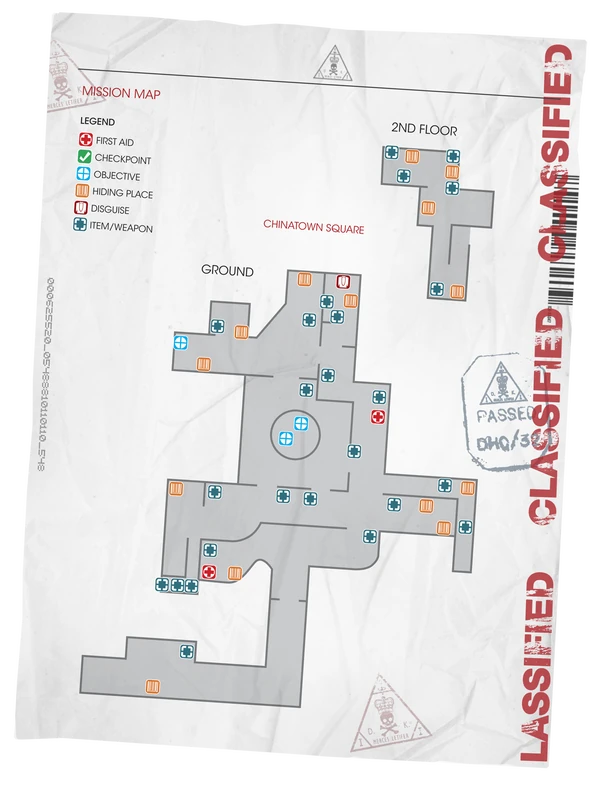 The sole target of the mission is The King, who will spend most of his time in a pagoda in the center of Chinatown, though he will occasionally step out of it to either walk around or go with his dealer to his apartment. 47 is allowed in most public areas.