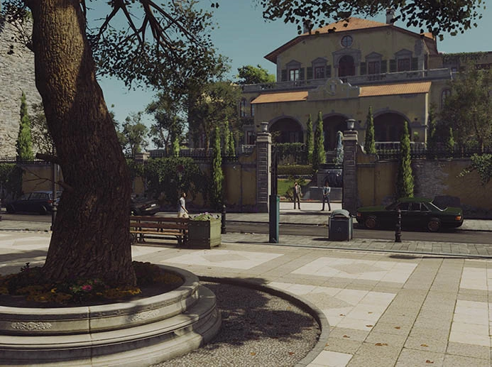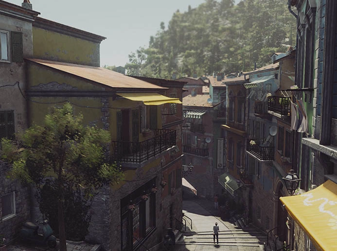 47 has chosen a sniper vantage point overlooking Villa Caruso and the main square, and he can now begin missions from there (Mastery Level 7 on HITMAN™ Professional Difficulty). |