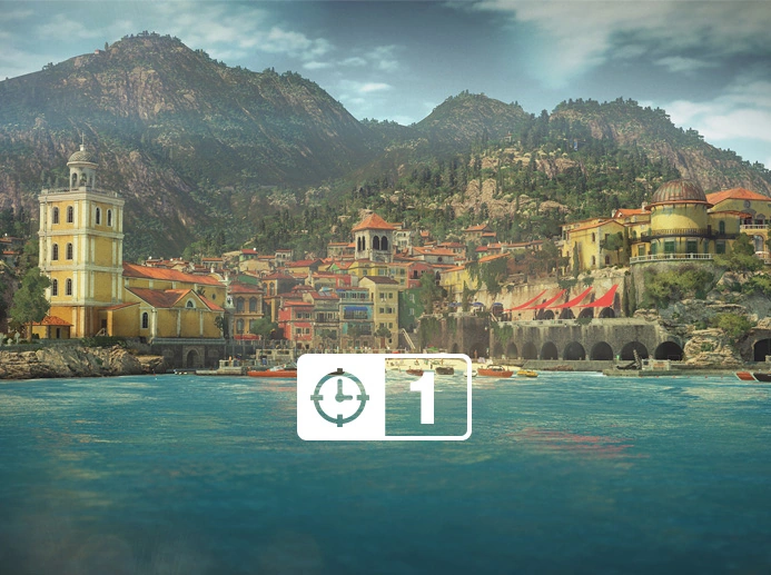 47 has arrived from the waterfront by boat and can begin his mission from the Sapienza Marina (Mastery Level 6 on HITMAN™ Professional Difficulty). |
