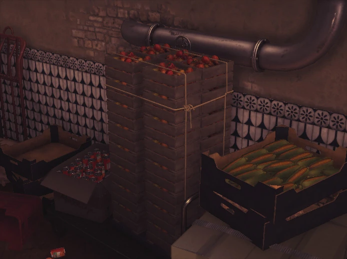 The ICA can smuggle a small item into a stack of food crates in the mansion kitchen (Mastery Level 6 on HITMAN™ Professional Difficulty). |
