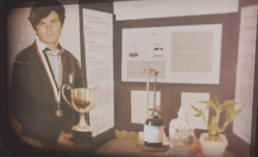 The image appears to depict Silvio when he was young, having won some kind of award. It looks like it might be for a science project he created. |